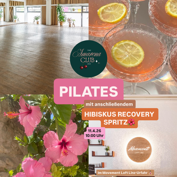 Gemeinsam mit dem Amarena Social Club (@theamarenaclublinz) veranstalten wir den Event Pilates + Hibiskus Recovery Spritz. Ein Vormittag an dem wir es uns einfach gut gehen lassen und Frauenpower zelebrieren, für alle weiblich gelesenen Personen ab 35. Hier geht's zur Anmeldung.